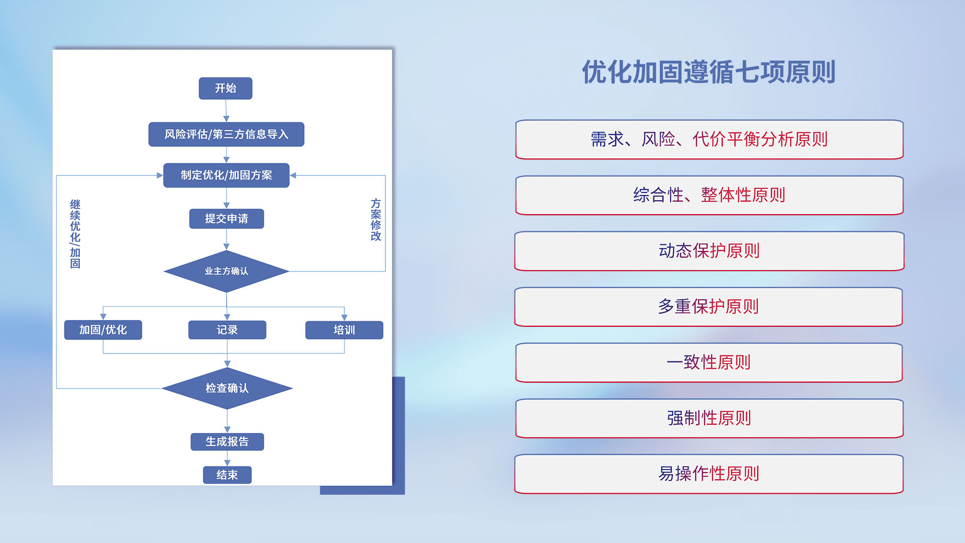最大程度利用现有资产,,,对评估发现的问题进行封堵与整改,,,,防止漏洞被利用,,提升整体网络安全性,,为客户带来高标准的优化加固服务。。。